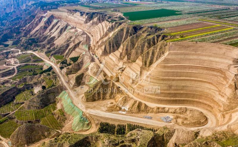 2020年3月30日,在山西黄河一号旅游公路运城市芮城段施工现场,施工队正在加紧施工。