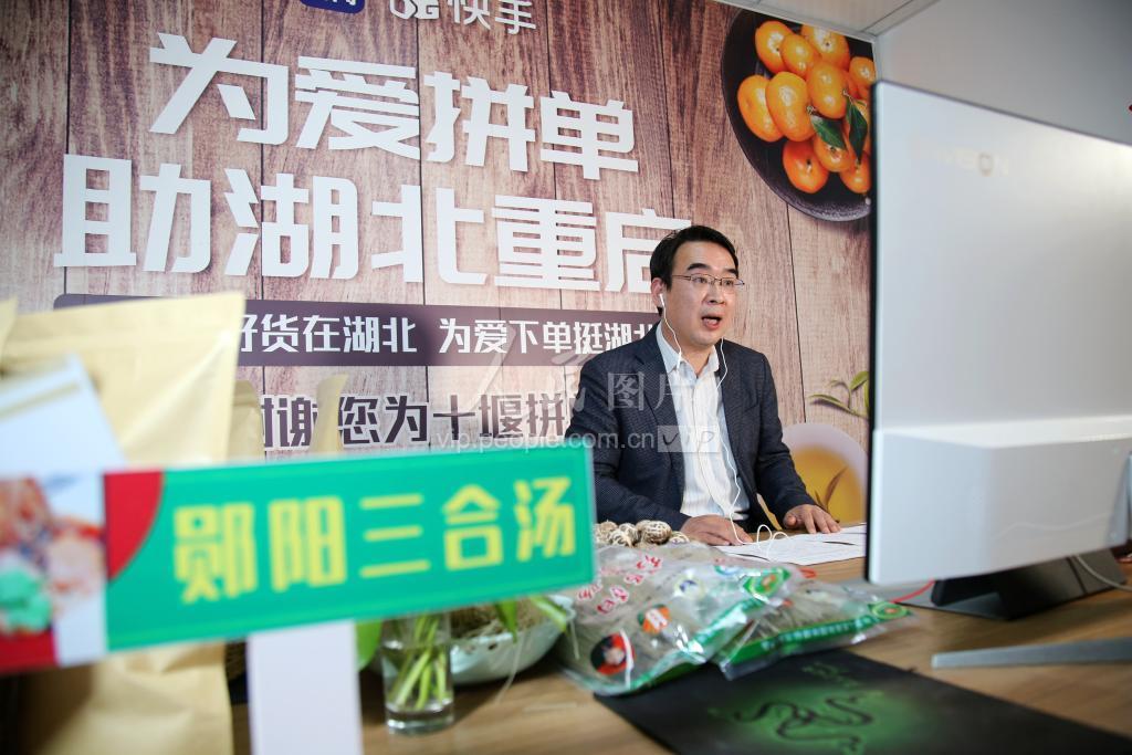 2020年4月12日,在湖北省十堰市郧阳区电商服务中心“谢谢你为湖北拼单”直播间,副市长王晓“直播带货”为农副产品代言。 当日,央视联合快手,开展“谢谢你为湖北拼单”主题公益直播活动,帮助销售湖北商品,助力湖北经济恢复。从晚上8时开始的两个多小时直播里,央视主持、明星、快手达人通过连麦直播,为包括十堰农副产品在内的湖北商品带货。截至当晚12时,共卖出6100万元的湖北农副产品,其中,十堰农副产品销售18886单,总交易额77.4万元。