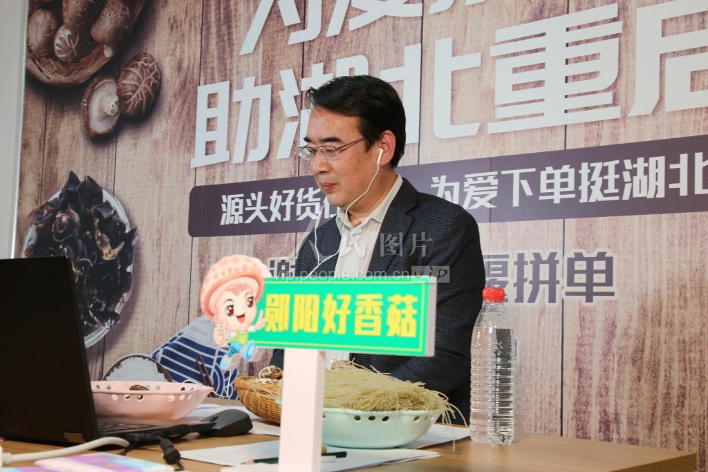 2020年4月12日,在湖北省十堰市郧阳区电商服务中心“谢谢你为湖北拼单”直播间,副市长王晓“直播带货”为农副产品代言。