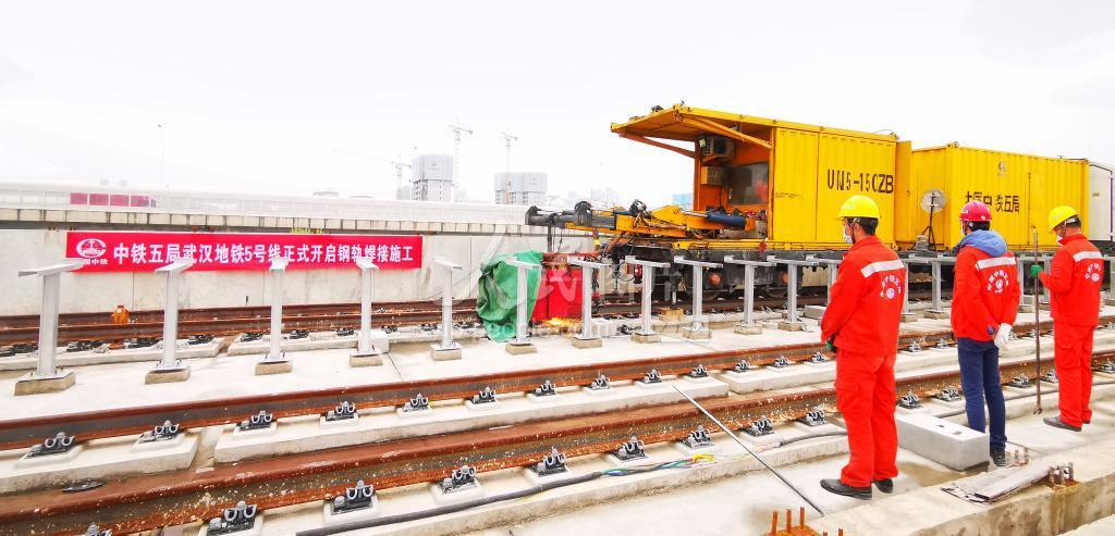 2020年4月11日,中铁五局一线工人进行武汉地铁5号线钢轨焊接打磨作业。 武汉地铁5号线是武汉市第三轮建设规划中的一条市内主干线路,也是武汉市首条全自动驾驶线路,横贯洪山、武昌及青山三大中心城区。自4月10日,武汉百大项目集中开工以来,武汉地铁5号线率先复工,各施工单位采取积极稳妥的管控措施,一手抓防疫,一手抓施工,快速推进轨道焊接作业,确保地铁早日建成通车。