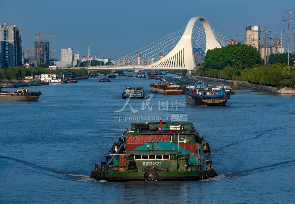 2020年4月27日,江苏省淮安市,运输船舶在京杭大运河上航行。