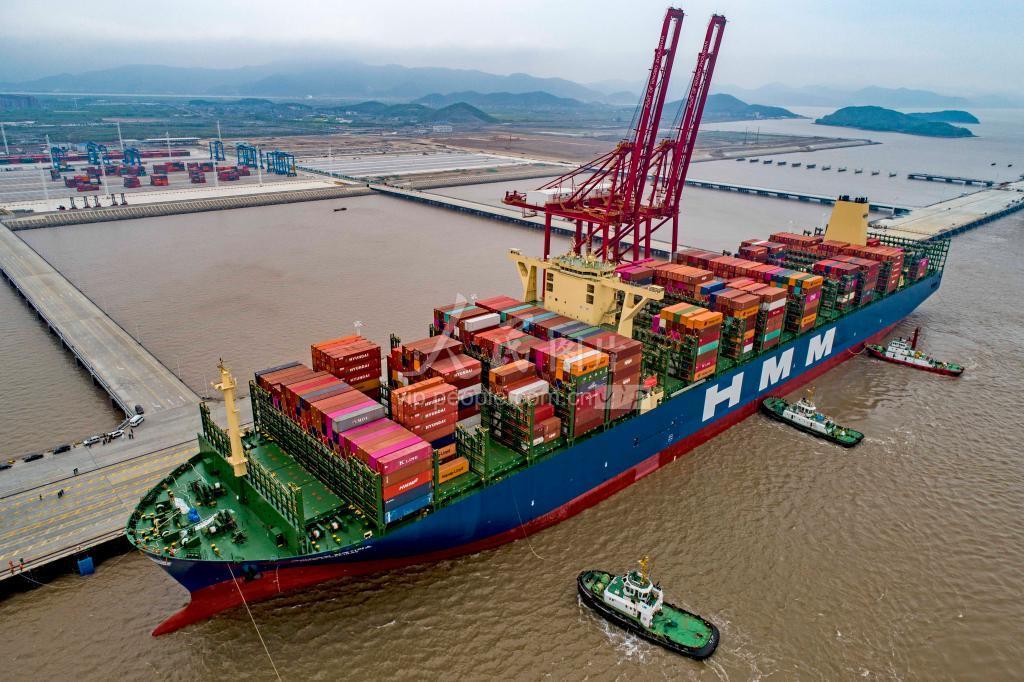 2020年5月1日,载箱量达23964标准箱的“现代阿尔赫西拉斯”轮挂靠宁波舟山港梅山港区7号泊位,国内新建的最高等级集装箱码头首次迎来全球最大的集装箱船。