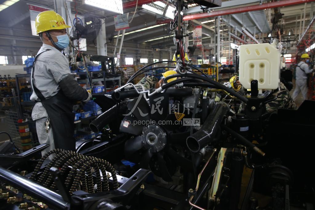 2020年5月3日,东风汽车股份有限公司工程车事业部二总装车间,车间里机器的轰鸣声、风枪的哒哒声、叉车的运转声声声入耳,装配工人正在紧张地忙碌着,一派热火朝天的景象。在严格防控疫情的当前,为赶生产任务,工程车事业部每天排产近100台,达同期产能水平150%。