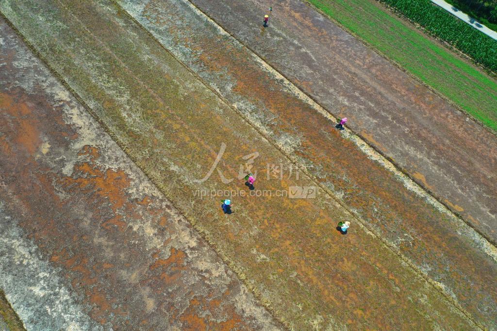 5月23日湖北省当阳市两河镇双龙村6组农民正在抢战“红五月”,在平整的水田中抛秧插禾,抛秧技术不仅解决了人工插秧劳力缺失的问题还大大提升了水稻产量。