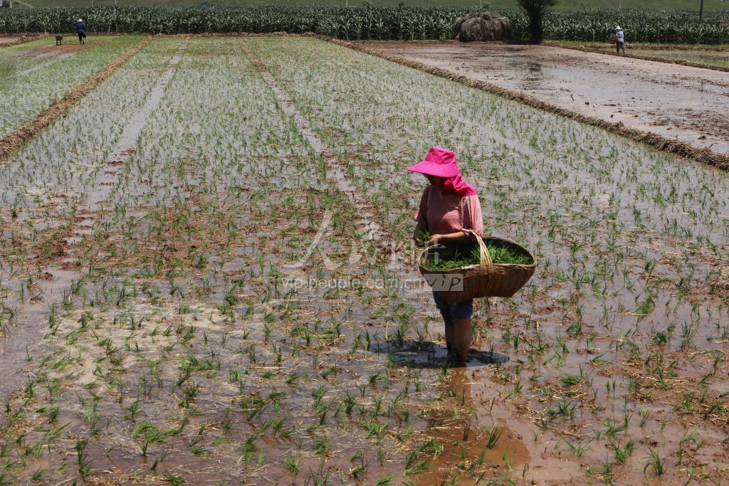 2020年5月23日湖北省当阳市两河镇双龙村6组农民正在抢战“红五月”,在平整的水田中抛秧插禾,抛秧技术不仅解决了人工插秧劳力缺失的问题还大大提升了水稻产量。 当阳市地处江汉平原,是湖北的粮仓。该市在推行农业机械化,耕田、耙地、植保、收割全程达到了机械化后,针对机械插秧成本贵且质量参次不齐的问题,实施室内温室育秧,大面积用抛秧技术替代了人工插秧。