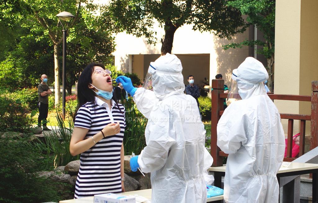 5月23日,小区内居民接受核酸检测。