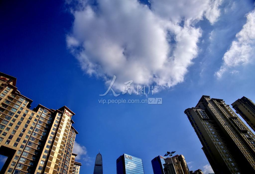 5月23日,蓝天白云与苏州工业园区的楼宇建筑交相辉映。