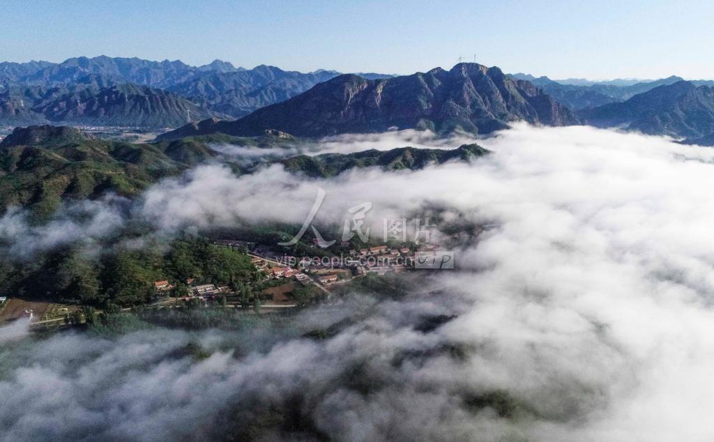 2020年5月24日清晨,雨后的河北省遵化市的北部燕山山脉水雾升腾,晨光中的长城、山峦、村庄在其中若隐若现,美景如画。