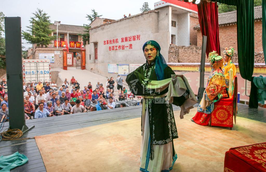 2020年6月6日,山西省运城市稷山县太阳乡杨家庄村,剧团演员正在表演折子戏《三对面》。