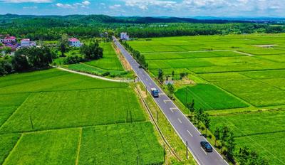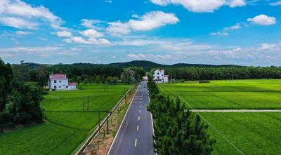 2020年6月16日,江西省吉安市泰和县石山乡社背村乡村公路穿越稻田、村庄之间,构成一幅夏日风景画,美不胜收。