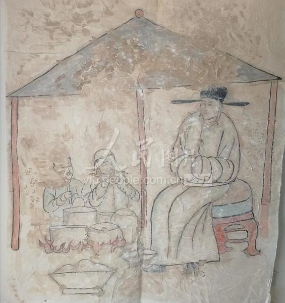 2020年4月22日,在内蒙古赤峰市敖汉旗四家子镇闫杖子村水泉村辽墓拍摄的故事壁画《烹饪图》。