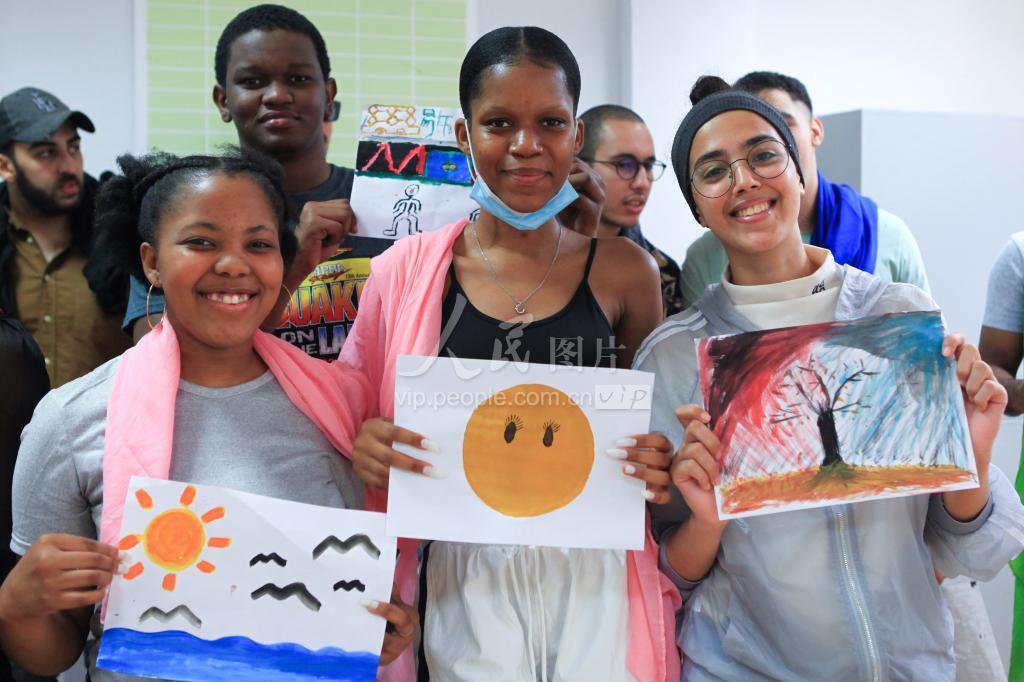 2020年6月19日,江苏理工学院的留学生们展示自己的绘画作品。