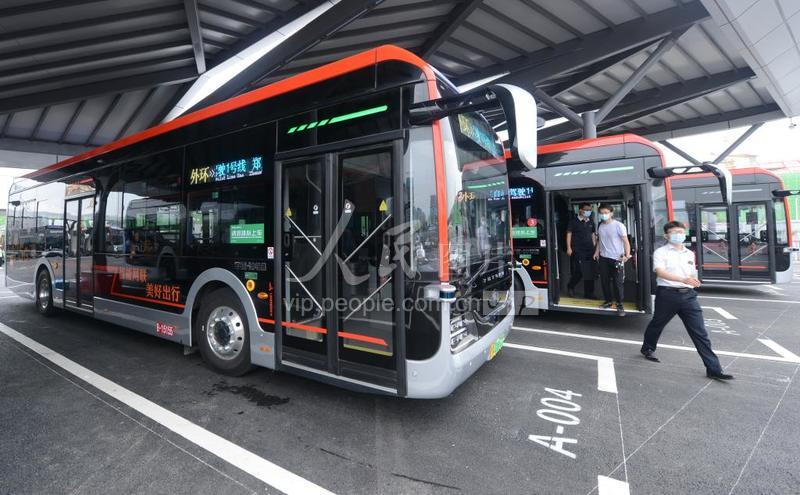 2020年6月22日,郑东新区自动驾驶公交一号线公交场站,工作人员在测试自动驾驶公交车。