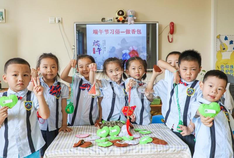 2020年6月24日,山东省滕州市七彩阳光幼儿园举行“传统民俗迎端午”主题活动,小朋友们通过体验手工制作香囊、包粽子、编织五彩线,“划旱船”等活动,感受端午传统民俗文化。