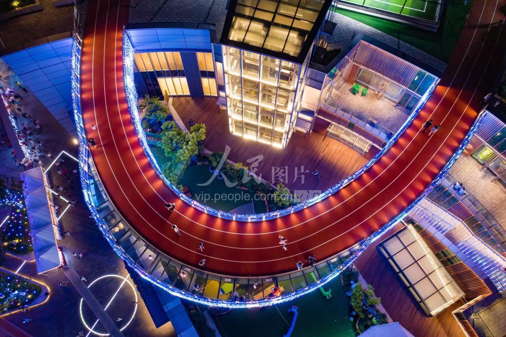 2020年6月29日,安徽省合肥市庐阳区海棠街道商业综合体万象汇的空中跑道,市民在散步健身。 为满足市民对美好生活向往和健身场地需求,该商场建设时在当地政府倡导下,以“潮流、时尚、活力、健康”为设计理念,充分利用楼顶资源,在合肥商业综合体中率先引入空中跑道、空中运动场,一站式满足市民购物、休闲、运动需求。