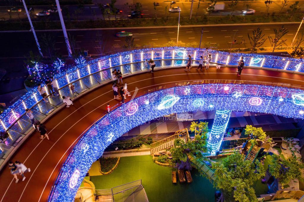 2020年6月29日,安徽省合肥市庐阳区海棠街道商业综合体万象汇的空中跑道,市民在散步健身。 为满足市民对美好生活向往和健身场地需求,该商场建设时在当地政府倡导下,以“潮流、时尚、活力、健康”为设计理念,充分利用楼顶资源,在合肥商业综合体中率先引入空中跑道、空中运动场,一站式满足市民购物、休闲、运动需求。