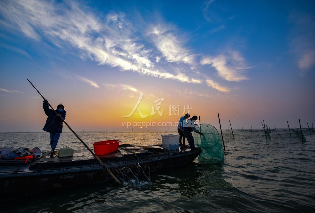 2020年7月1日,江苏省宿迁市骆马湖,渔民在湖中收网捕鱼。当日,骆马湖结束了为期5个月的禁渔期。由于渔民休渔意识明显增强,加之渔政部门增殖放流力度的加大,湖区水生生物资源得到了有效的恢复。开捕首日,花鲢、白鱼等湖鲜水产品肉肥体大,鱼跃人欢的丰收场景随处可见。