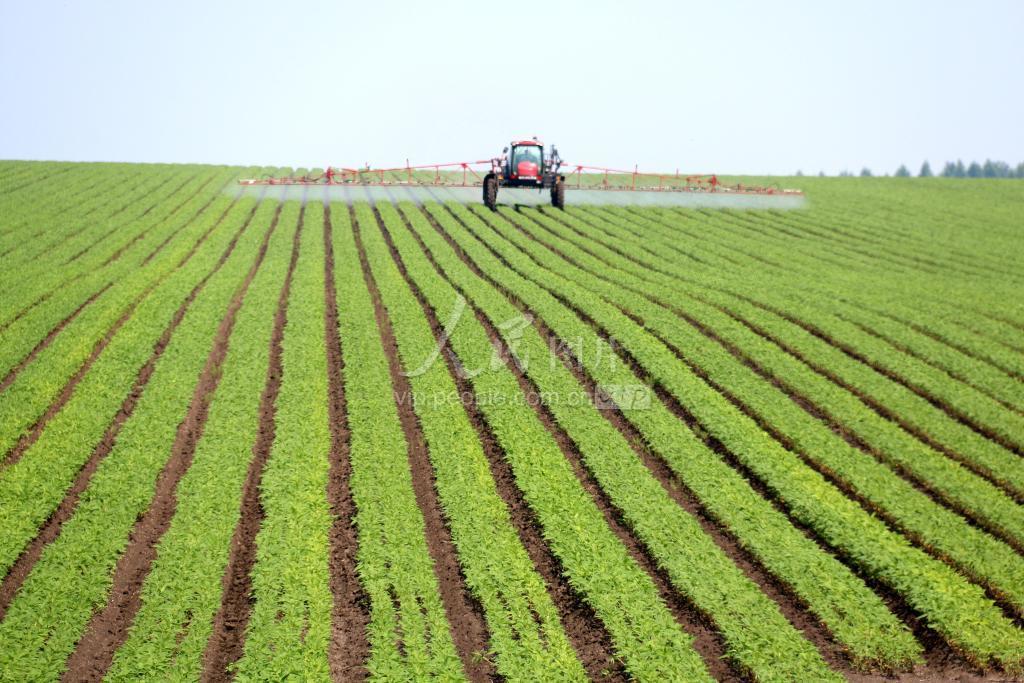 2020年7月2日,黑龙江垦区五大连池农场第五作业站一台大型机车正在为大豆喷施叶面肥及防虫、防病、防草药剂。