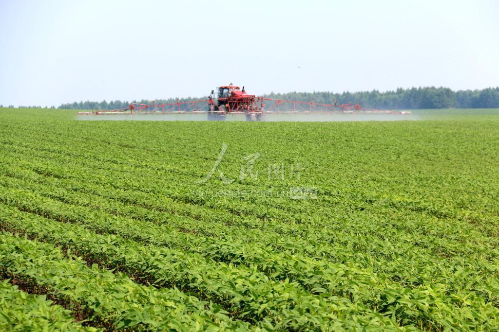 2020年7月2日,黑龙江垦区五大连池农场第五作业站一台大型机车正在为大豆喷施叶面肥及防虫、防病、防草药剂。