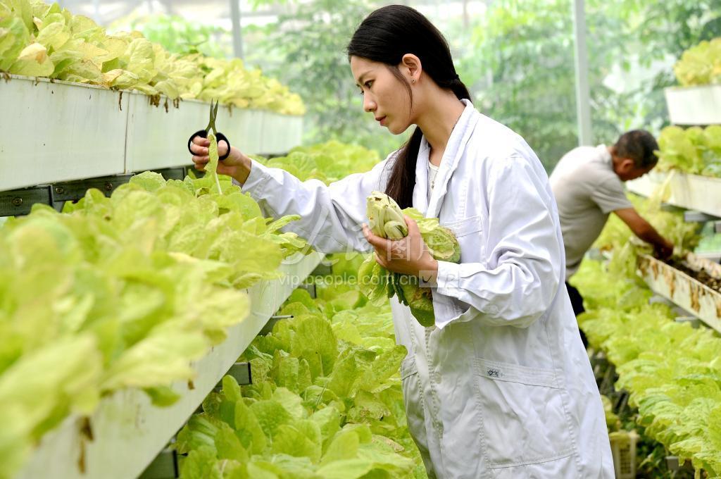2020年7月12日,黄莉岚在农业生态园区采摘绿色蔬菜。