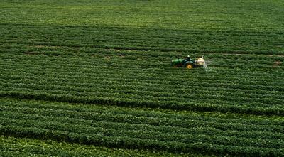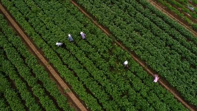 2020年7月12日,在甘肃省定西市安定区香泉镇马铃薯种植基地,农民在进行马铃薯田间管理。