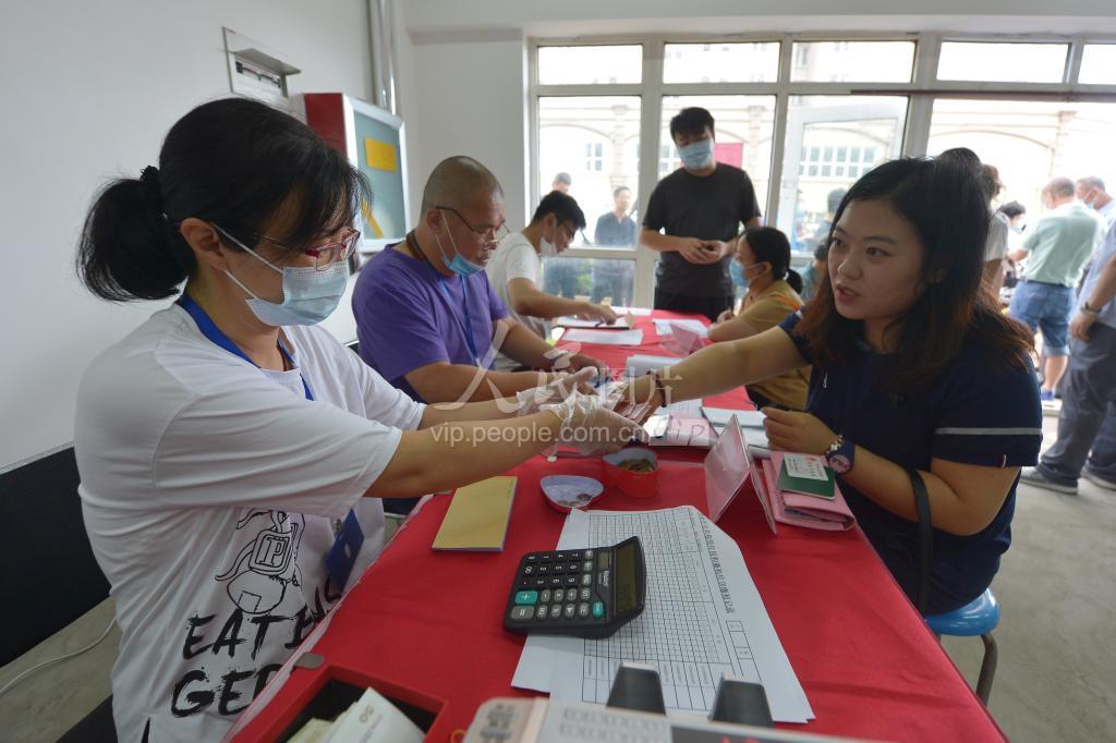 2020年7月23日,在山东省青岛市李沧区文昌路820号,居民正在交付新房房租和物业费。