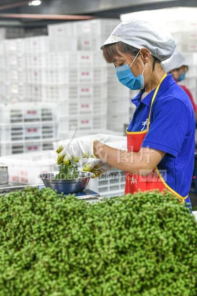 2020年7月23日,重庆市酉阳土家族苗族自治县板溪轻工业园区一家青花椒加工企业,工人正在加工青花椒产品。