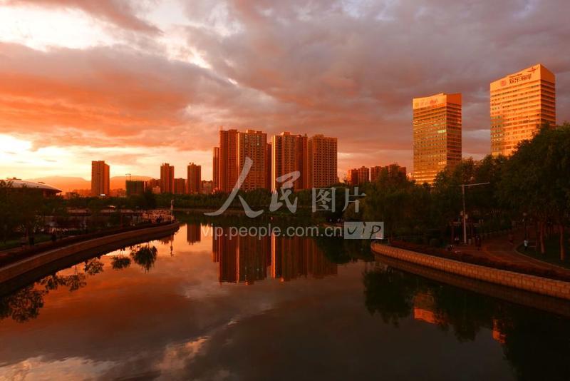 大暑节气前后,新疆库尔勒连续几天出现雨水天气,每天的雨水天气过后的库尔勒地区晚霞如画,在孔雀河、天鹅河、鸿雁河等风景区水天一色、五彩斑斓,构成了一幅美丽的自然画卷。