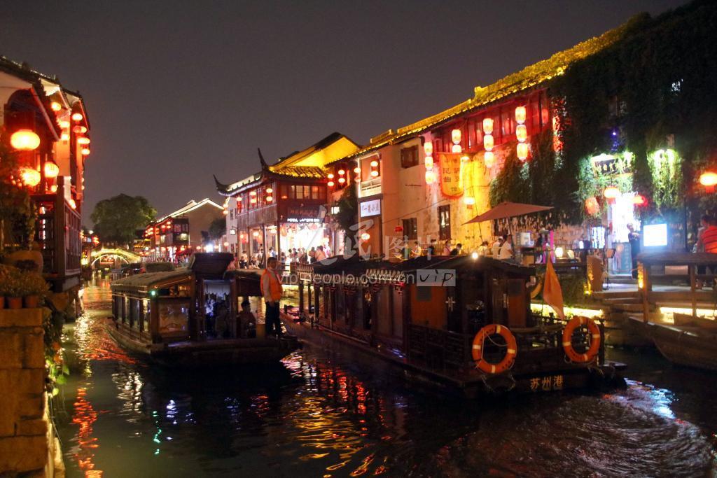 2020年7月28日,夜幕下的江苏苏州山塘古街凉风习习,景色迷人,吸引众多游客前来消暑纳凉,体验江南水乡韵味。
