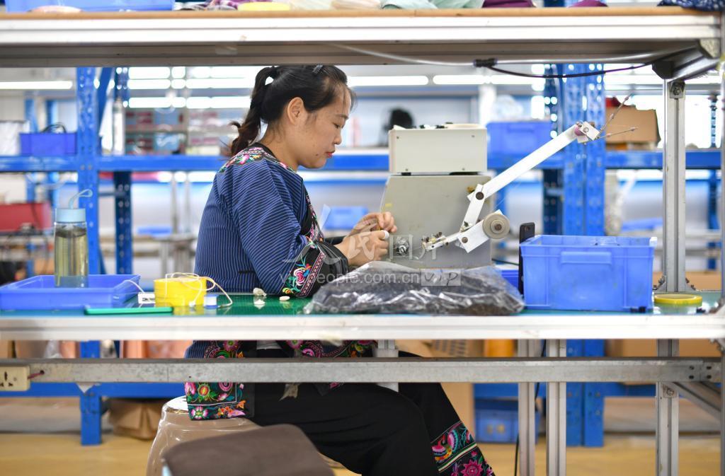 2020年7月29日,湖南省花垣县民乐镇易地扶贫安置区电子加工“扶贫车间”,妇女在加工电子产品。