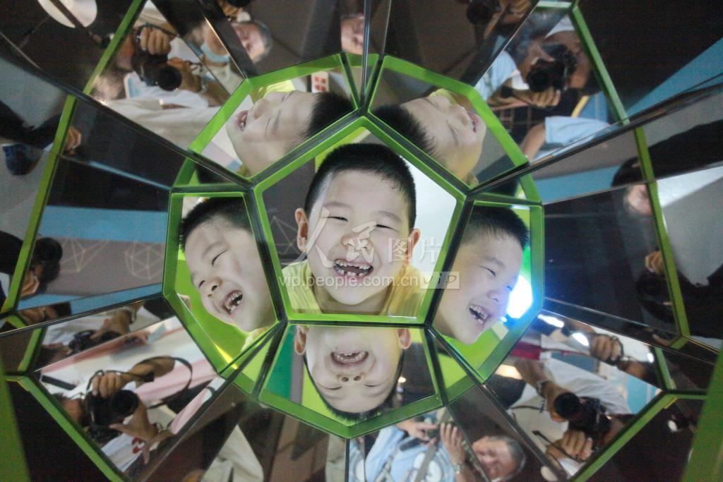 2020年7月29日,一名小朋友在江苏省扬州科技馆体验“多面镜”。