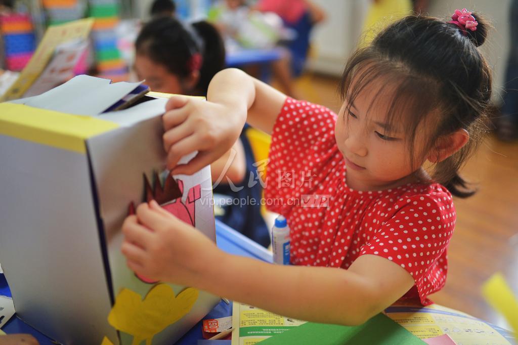 2020年7月29日,暑假期间,山东省青岛市镇江路街道太平镇社区为小学生开设“垃圾分类”兴趣课程,孩子们通过动手制作分类垃圾箱、垃圾分类比赛、体验智能垃圾分类等过程,提高垃圾分类意识,度过别样假期生活。