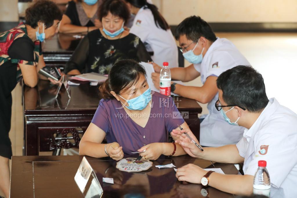 2020年7月30日,在浙江省湖州市德清县下渚湖街道朱家村文化礼堂,中医专家们为乡村群众义诊。