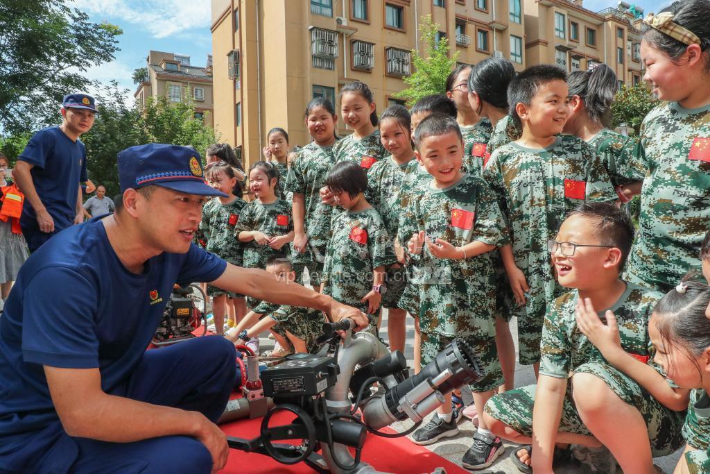 2020年7月30日,浙江省湖州市德清县雷甸镇组织的“小小消防兵、快乐夏令营”,吸引了众多新居民子女参加。认识消防救援器材、掌握火灾逃生知识、知晓安全用火要点,提升学生灾害预防和自我保护能力,增强新居民子女安全意识。德清县雷甸镇有4.5万多名新居民在当地企业务工,暑假期间,当地组织各类夏令营活动,丰富新居民子女暑假生活。