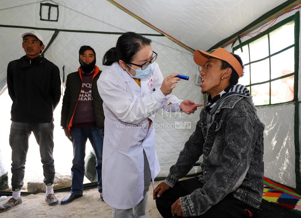 2020年7月31日,陕西援藏医疗队医生为群众进行口腔检查。