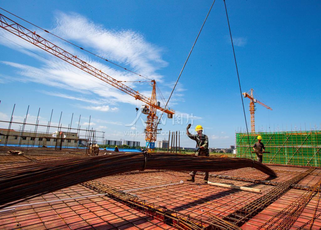 2020年7月31日,江西省九江市湖口县新动能产业园二期项目建设现场,工人正头顶烈日,战高温,斗酷暑,全力推进项目建设进度。