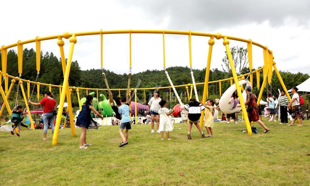 2020年8月1日,游客在江西省赣州市全南县江禾田园亲子乐园游玩。近年来,赣州市全南县将现代旅游产业置于首位发展,着力打造服务粤港澳大湾区的重要旅游目的地。近三年来,该县已建成3个核心景区、10个乡村旅游点。