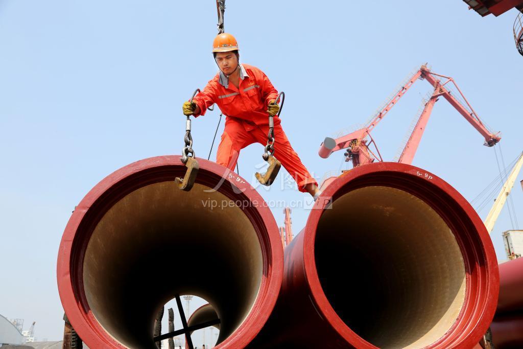 2020年8月1日,江苏省连云港港口码头上数千名工人不畏高温酷暑,码头上平台温度高达38℃左右,码头闷热难当,他们在滚滚热浪中挥汗如雨奋战在生产第一线,以确保港口生产运行态势保持平稳较快增长。