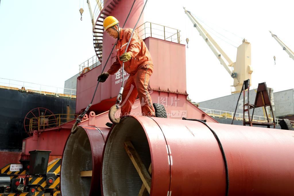 2020年8月1日,工人冒着酷暑在连云港港东方公司码头生产第一线装卸作业。