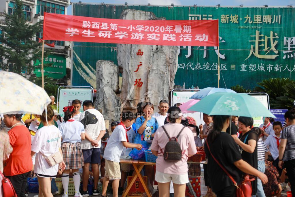 2020年8月2日,贵州省毕节市黔西县第一小学开展暑期“夏收采摘 自产自销”活动,让学生在劳动中增长知识,获得体验,提高学生的社会实践能力。 据了解,去年以来黔西县第一小学为培养学生“劳动美”的意识,在该县文峰街道双星社区,开展农耕研学活动,让学生种植辣椒、圣女果、南瓜、茄子、韭菜等蔬菜。学习农业知识,品农耕文化,体验农业田园生活。