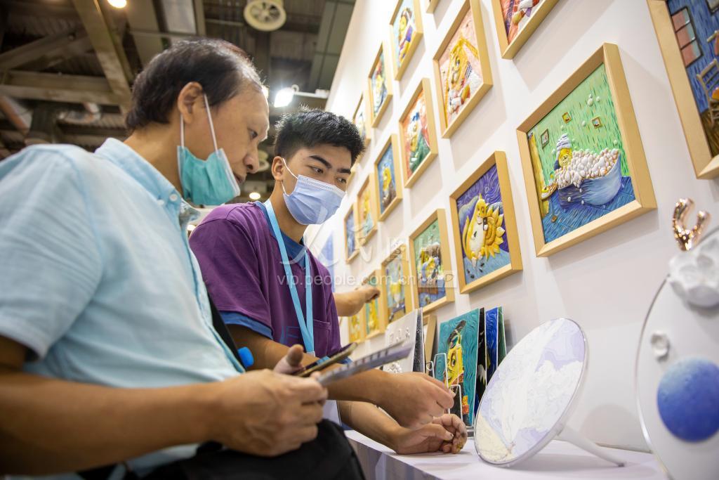2020年8月1日,市民们在苏州创博会上了解体验文创产品,享受文化创意带来的乐趣。 ”2020第九届中国苏州文化创意设计产业交易博览会”于7月31日至8月2日在在苏州国际博览中心举行,创博会以“新设计·新生活·新天堂”为主题,设置“创·设计”、“承·工艺”、“融·文旅”、“趋·未来”4大展区43个主题展馆,共有400余家参展企业,展示展品2万多件。