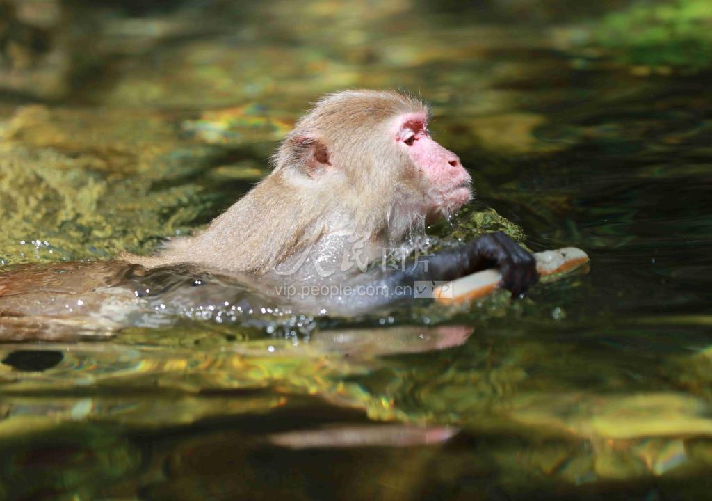 连日来,湖南张家界市出现持续高温天气,在张家界武陵源景区金鞭溪,成群的野生猕猴在溪流中游泳、玩耍、觅食,享受清凉,样子憨态可掬。