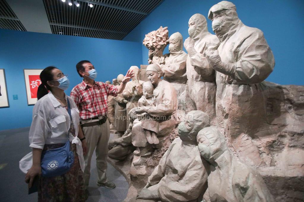 “众志成城——抗疫主题美术作品展”2020年8月1日起在北京中国国家博物馆开展。本次展览共展出在抗击新冠肺炎疫情背景下创作的美术作品近200件(套),艺术形式涵盖国画、油画、版画、水彩画、宣传画、连环画、雕塑、书法、篆刻及工艺美术作品,创作内容以表现病患救治场景和疫情防控工作为主,兼及疫区人民生活保障、复产复工、对外医疗援助等方面,生动地刻画了中国人民抗击疫情的艰辛历程以及在这个过程中展现出的伟大抗疫精神。