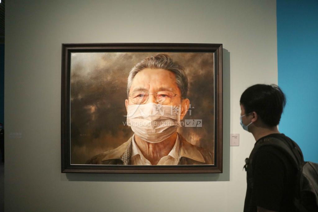 2020年8月2日,观众在观看名为《中国共产党员—钟南山》的油画作品。