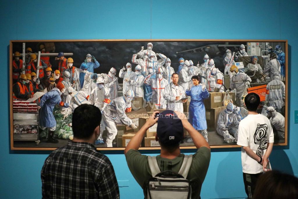 “众志成城——抗疫主题美术作品展”2020年8月1日起在北京中国国家博物馆开展。本次展览共展出在抗击新冠肺炎疫情背景下创作的美术作品近200件(套),艺术形式涵盖国画、油画、版画、水彩画、宣传画、连环画、雕塑、书法、篆刻及工艺美术作品,创作内容以表现病患救治场景和疫情防控工作为主,兼及疫区人民生活保障、复产复工、对外医疗援助等方面,生动地刻画了中国人民抗击疫情的艰辛历程以及在这个过程中展现出的伟大抗疫精神。
