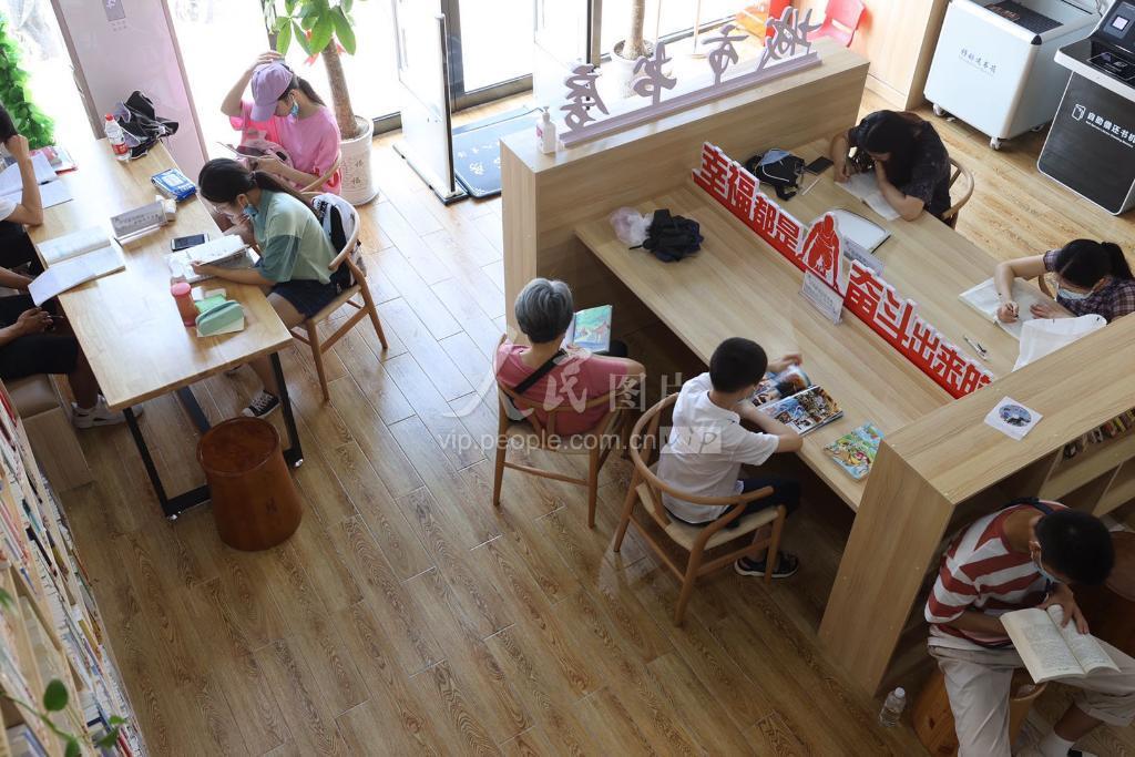 2020年8月2日,社区居民在星火路的“城市书房 ” 阅读。7月28日,位于湖北省襄阳市樊城区星火路的“城市书房”正式对外开放以来,这里每天都会出现排队等候开放,来晚了“城市书房”都会呈现一座难求的场景。“城市书房”采用无人值守的智能自助服务模式,现阶段免费开放时间为每周二至周日9:00-20:00(周一闭馆),市民可以凭身份证、图书借阅卡或电子借阅证进入书房进行借阅、还书。书房配有自助借还机、电子书借阅机、图书消毒机等现代化设备,为市民提供“便捷、高效、舒适”的阅读服务。