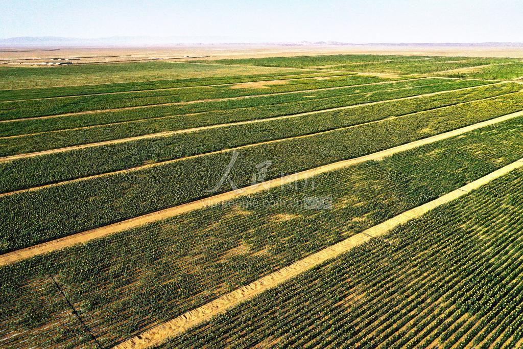 2020年8月4日,甘肃省张掖市高台县黑泉镇十坝滩上种植的千亩向日葵迎风绽放,如金色的海洋。 近年来,高台县按照“规划先行、生态优先、科学布局、定位高端”的基本思路, 通过企业带动、农户参与、科技支撑的方式,大力发展戈壁农业。目前,全县戈壁农业面积超过10万亩。今年首次在十坝戈壁滩上引进食用向日葵新品种SH363,种植面积达1800亩,长势良好。