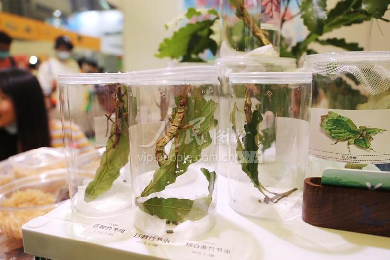 2020年8月19日,上海,亚洲宠物展览会上“另类宠物”竹节虫吸引玩家。