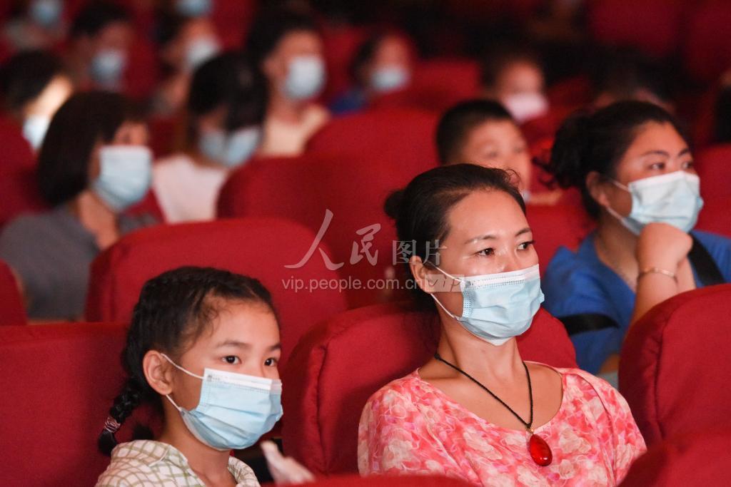 2020年8月27日晚,湖北省第四届地方戏展演剧目汉剧《老八栋的灯塔》在荆州首演,观众在观看演出。