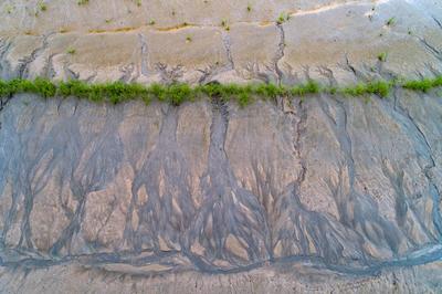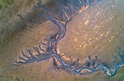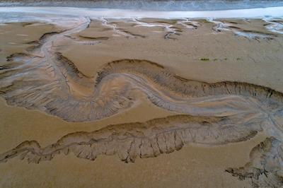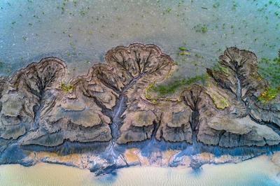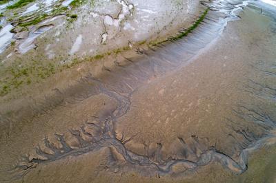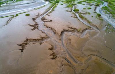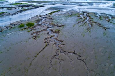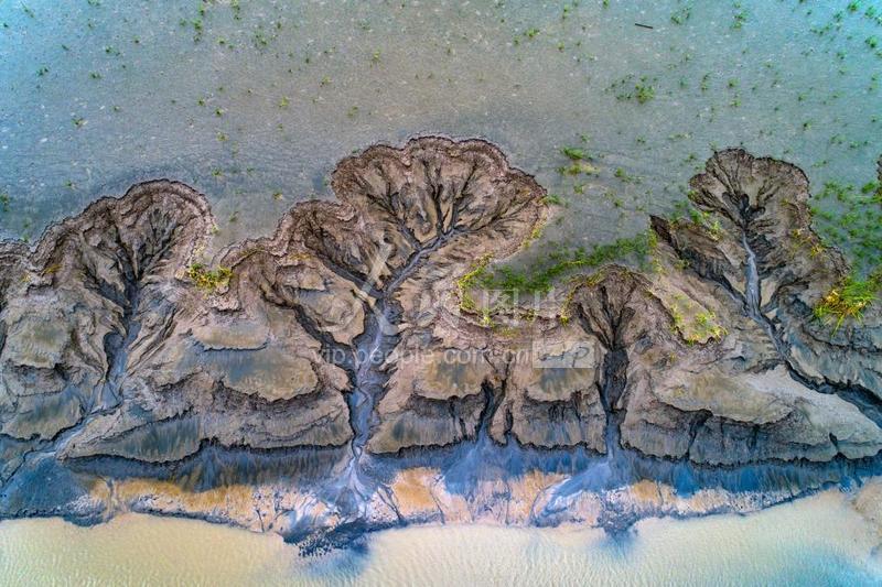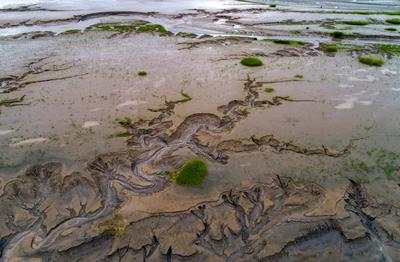 2020年8月29日,江苏省南通市如东县小洋口海涂湿地,由潮汐形成的海涂湿地自然纹理如一幅幅美丽的画卷。